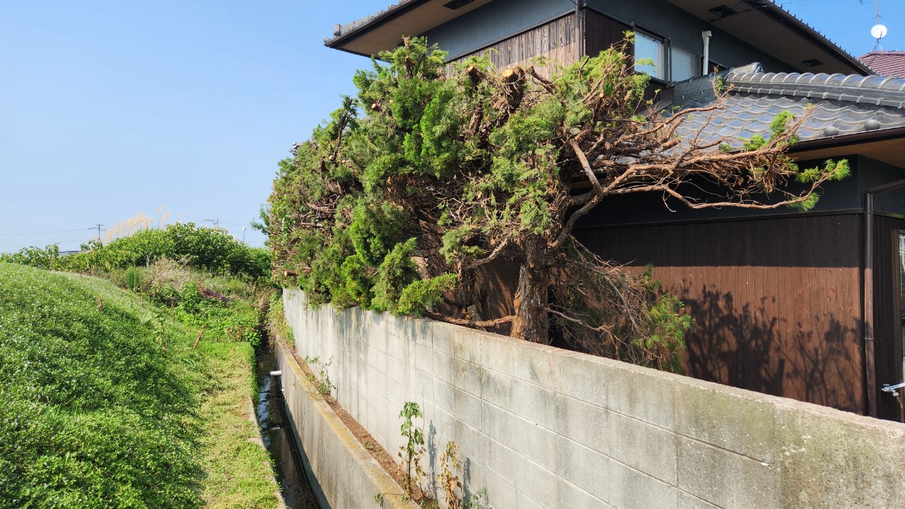 多度津町Y様邸カイズカイブキ生け垣強剪定作業及び伐採作業|【高松市】樹木の伐採や剪定をはじめ、お庭を美しく快適な空間へ整えます。